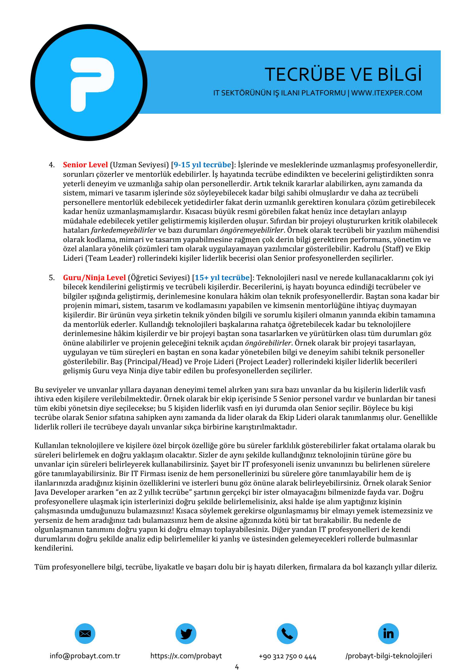 İş hayatındaki bilgi ve tecrübe süresine göre unvanların belirlenmesi iş ilanlarında doğru iş ile profesyonelin eşleşmesi ve beklentileri karşılama konusunda çok önemlidir.